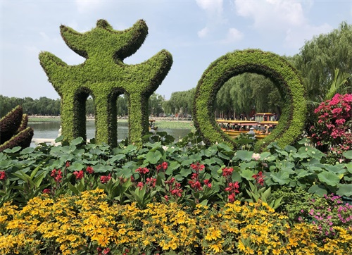 园内摆放的和字花坛