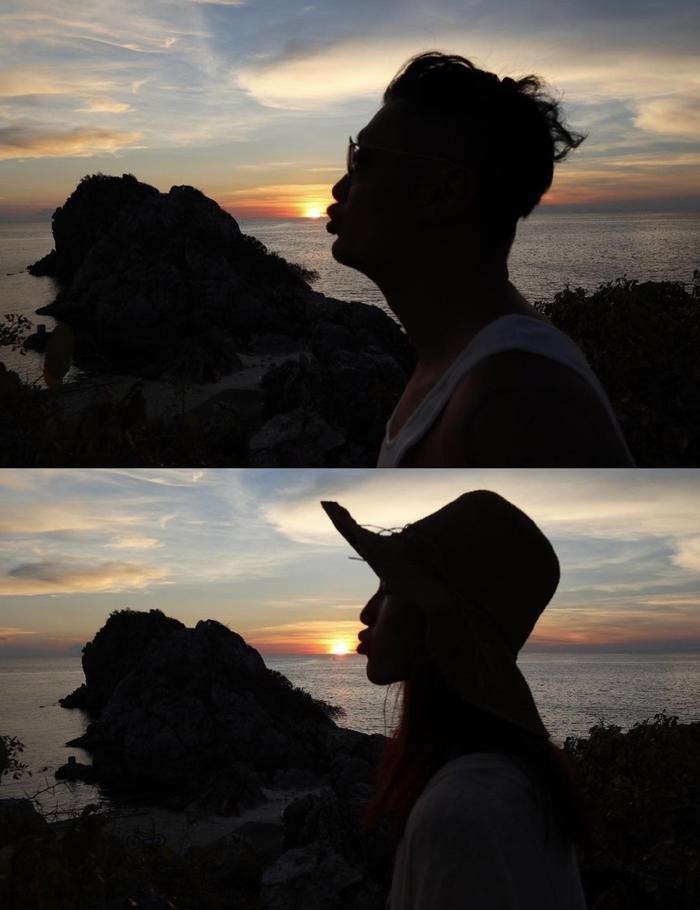 余文乐也分享了两人的旅行照,他们来到海边,站在同一地点亲吻落日,颇有意境。