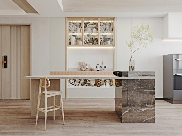 不同空间再搭配上独特的松叶青和轻奢木调,既不突兀又可以给整个空间带来满满的氛围感。