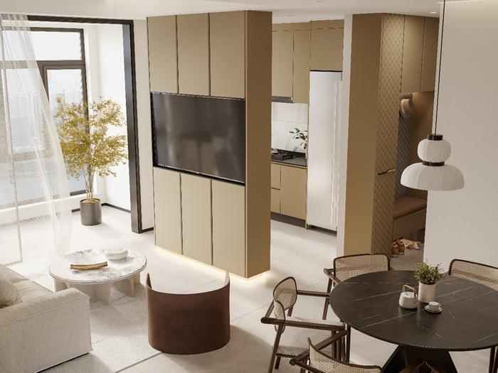 这种配色深受年轻人的喜欢,而且奶茶色属于一个偏浅的色调,整体会显得更加细腻和柔和,可以配上一些亮色家具、暖色软装等,给全屋带来更温馨舒适的体验感!