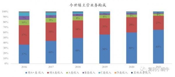 截止2021年底,特A+类营业收入41.65亿元,特A类17.14亿元、A类2.56亿元、B类1.38亿元、C类0.84亿元、D类0.03亿元。