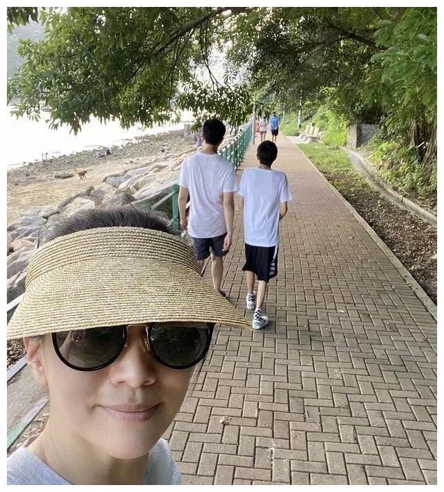 照片中,儿子与爸爸张智霖同款穿搭,白色T恤搭配黑色短裤,父子二人都是运动少年模样。一家三口似乎在公园晨练。老公张智霖和儿子并排走在前面,作为妈妈的袁咏仪拿出手机自拍,自拍照中靓靓姐皮肤白皙紧致,五官精致面带微笑,一点也看不出岁月的痕迹。