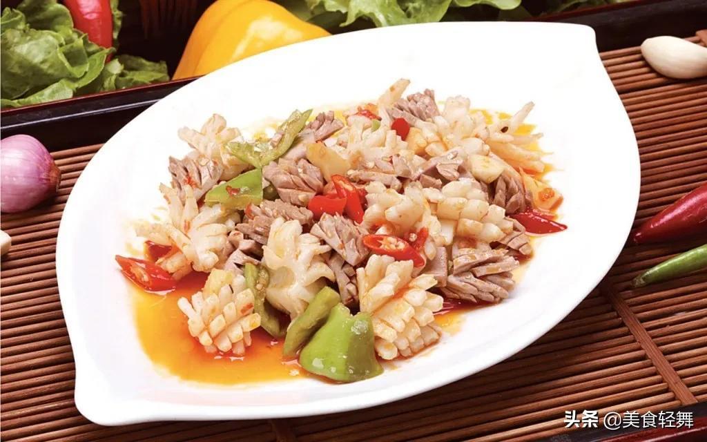这道菜是以猪肚尖和鸡胗为原料,刀工要精湛,用费油爆炒,口感即脆又嫩,清鲜爽口,颜色一红一白,属于色,香,味,形,兼备的特色美食。