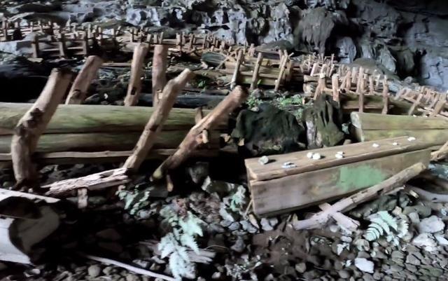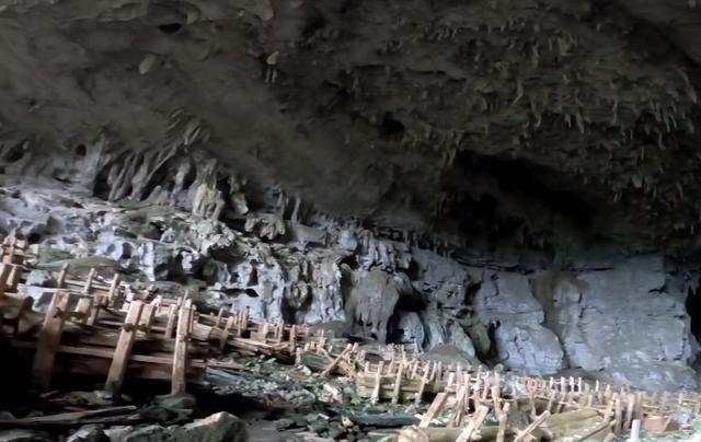 误入贵州一处山洞,洞中藏有400多具棺材,可清晰看见棺内骸骨