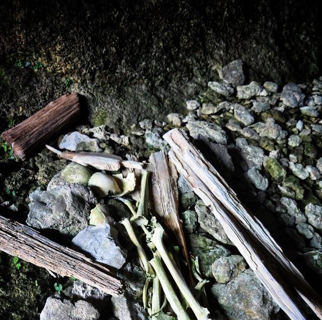 从棺木间穿行而过,有些棺木已经腐朽严重,棺盖也不知踪迹,可以清晰地看见棺内的骸骨。就像《西游记》里面的白骨洞,真怀疑里面会不会冷不丁地冒出一白骨精来。地上有时还会看到破碎瓦罐之类的祭祀用品,胆小的人切莫入内。