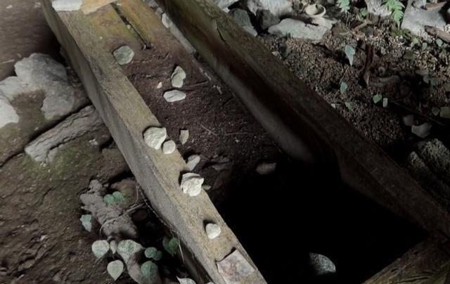 贵州被称为“地无三尺平”,特别是在深山之中,山高路窄,道路蜿蜒,树木茂盛,杂草将山路和山洞挡了个严严实实。洞穴是一处天然的溶洞,宽80余米,高50余米,可视深度200米左右。洞中有一条小道方便行人行走,道路左侧放置的是一些较为久远的棺材,棺木已经出现破损腐烂;右侧则是近代,棺木刷上黑漆,犹如新的一般。