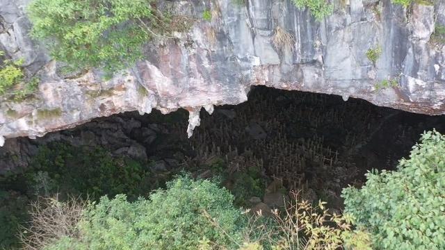 贵阳龙里县果里村,这是一个不知名的苗族小山村,却有着中国一种独特的墓葬形式,在村子附近深山中就有一处神秘的洞穴,洞中摆放着约400多具棺材。满山洞的棺材,真的令人毛骨悚然,后背发凉。