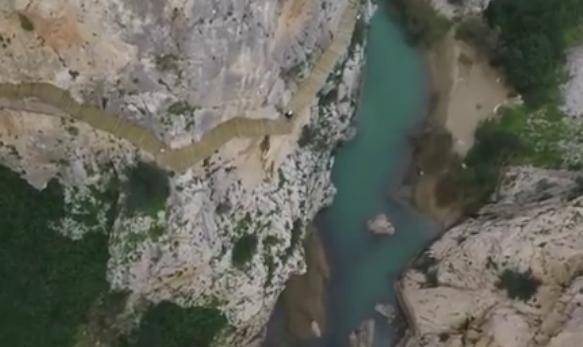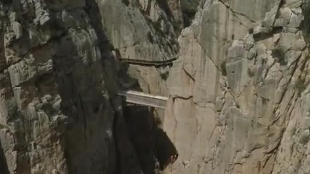 这就是位于西班牙的“国王栈道”国王栈道总长度约2.9公里,栈道最宽的地方仅有1米,最窄的地方不到50厘米,有全球最惊险步道的称号,在栈道的一侧是陡峭的崖壁,而另一侧则是幽深的峡谷。