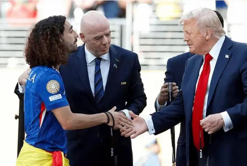 7 月 14 日,世俱杯决赛,切尔西 3-0 大胜巴黎圣日耳曼,夺得冠军。随后的颁奖仪式上,美国总统特拉普强行抢镜,发完奖后拒绝离开,和切尔西球员一起捧杯庆祝。今日,蓝军队员对此疯狂吐槽。
