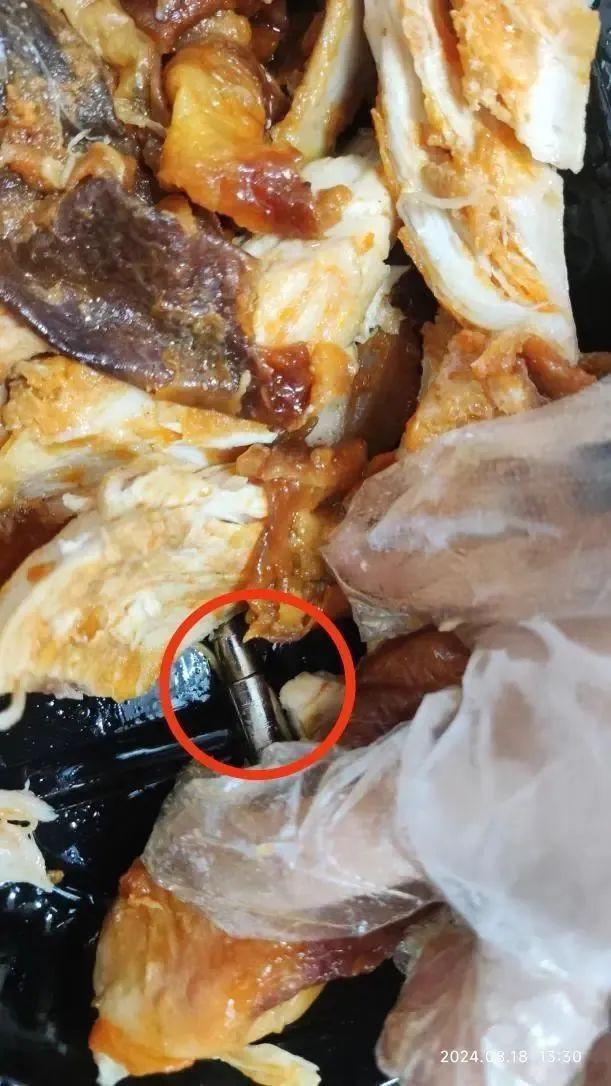 2024 年 8 月,深圳一消费者在山姆烤鸡中发现一枚金属异物 / 图源:受访者供图