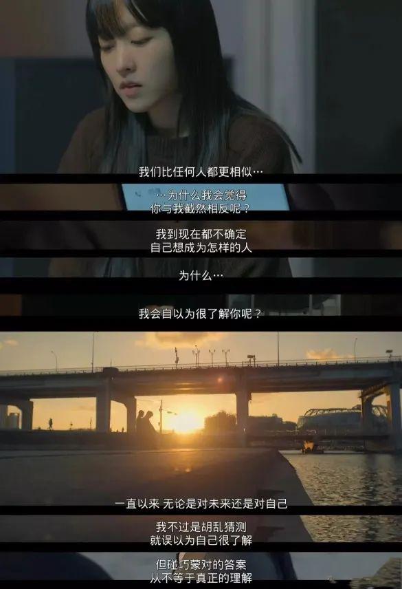 在身份互换期间,姐妹俩看到了自己没见过的妈妈,对妈妈的一些行为和观念也更能共情了,就像未知的独白:" 那时我蜷缩在房间里,以为只有自己活在煎熬中,从没想过砸坏门把手那一刻,我妈妈心里到底在想什么。"