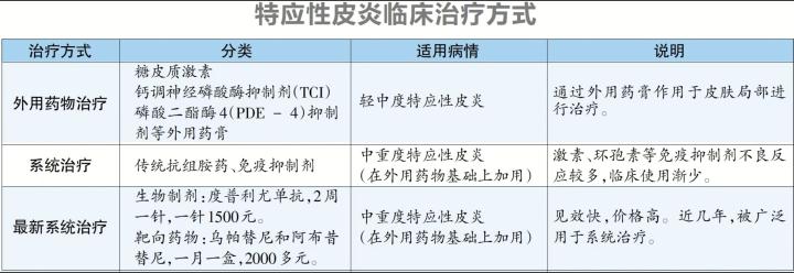 近年来,随着药物研究的不断发展,特应性皮炎治疗领域有两大类新药出现,一类是生物制剂,代表性药物为度普利尤单抗;另一类是靶向药物,以乌帕替尼和阿布昔替尼为代表,这两类药物的应用使特应性皮炎从传统治疗迈入了精准治疗时代。" 靶向药物见效很快,服用当天就能止痒,但价格有点高,2000 多元一盒。"