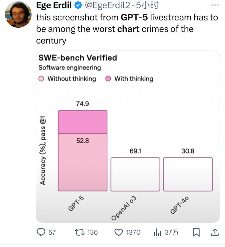 几个月前,甚至发布前,都不会有人想到,这么万众期待的模型发布,被传播最多的会是多张让人哭笑不得的错误图表:
