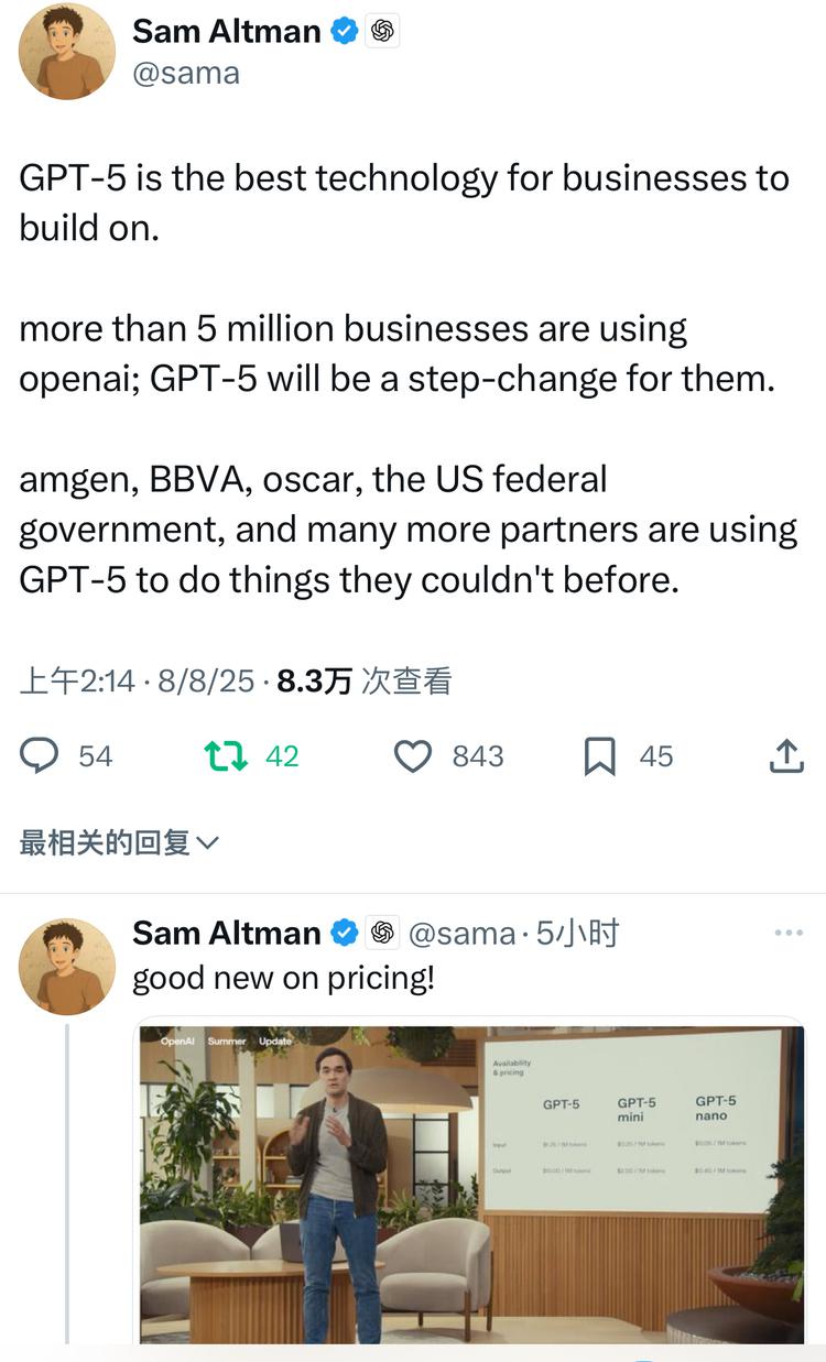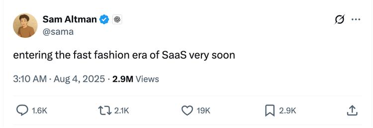 结合 Sam Altman 此前在 X 上关于 SaaS 的预判,一旦企业能够基于 GPT-5 自主构建应用,传统 SaaS 模式确实面临冲击。