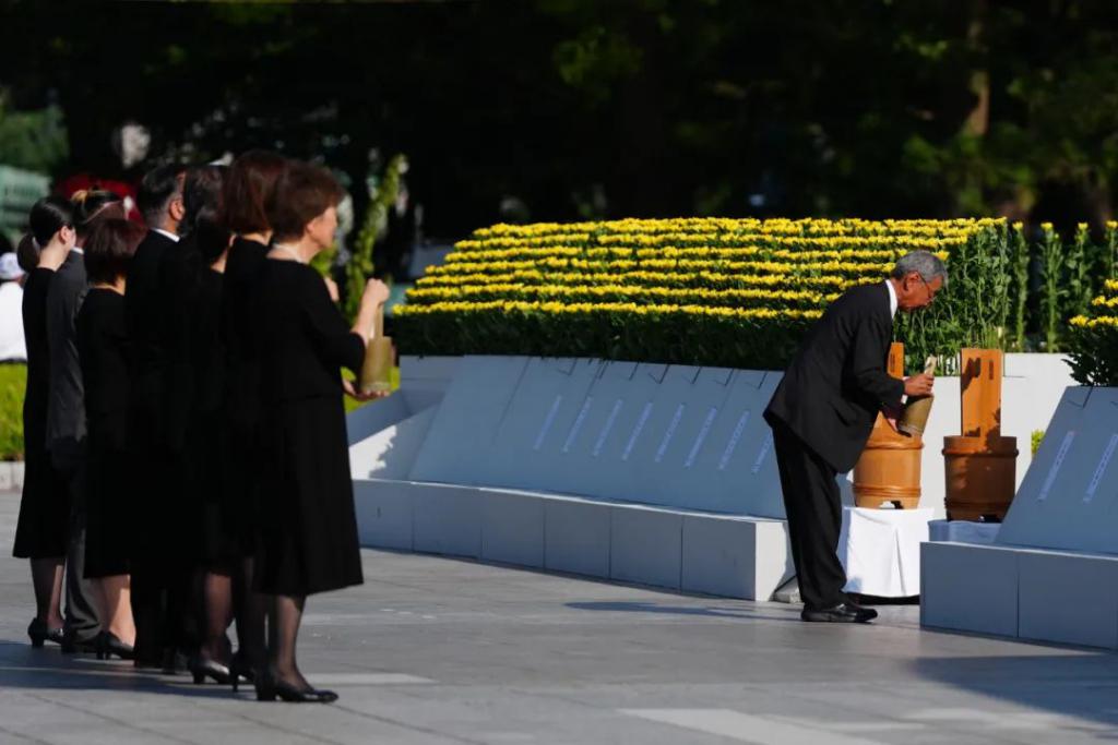 日本广岛市 8 月 6 日在和平纪念公园举行遭原子弹轰炸 80 周年纪念仪式 / 新华社记者 贾浩成 摄