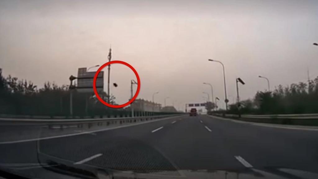 汽车行驶途中一块石头飞来,红圈内的是石头。网络截图。