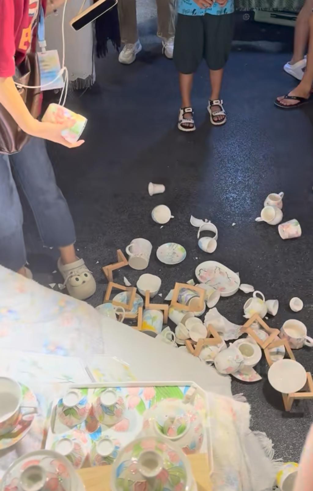 据都市快报报道,8 月 10 日,江西景德镇,陶溪川文创街区一摊位疑被游客踢倒,瓷杯碎了一地损失 5000 多元。摊主妈妈说,找不到人只能自己承担损失,女儿花了两个月心血,一笔笔画的。