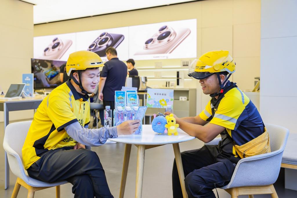 据双方介绍,随着越来越多消费者在闪购下单华为手机和其他商品,骑手伙伴成为日常活跃在华为门店的一份子。在取送单之余,骑手们对歇脚充电、补水补能、消暑降温有切实需求。为此,美团闪购和华为合作,借助华为广布全市的门店网络,落地 " 骑手补给站 ",暑期向骑手伙伴提供免费水饮、咖啡、冰凉贴、创可贴、巧克力、雨衣等,及充电等服务,希望进一步提升骑手伙伴们的工作体验。