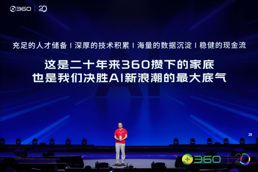 周鸿祎表示,站在过去与未来的转折点上,360 应该放下以往的辉煌和遗憾,以空杯心态、「First day」思维开启新征程," 我们有充足的人才储备,深厚的技术积累,海量的数据沉淀,稳健的现金流,这是二十年来 360 攒下的家底,也是我们决胜 AI 新浪潮的最大底气。"