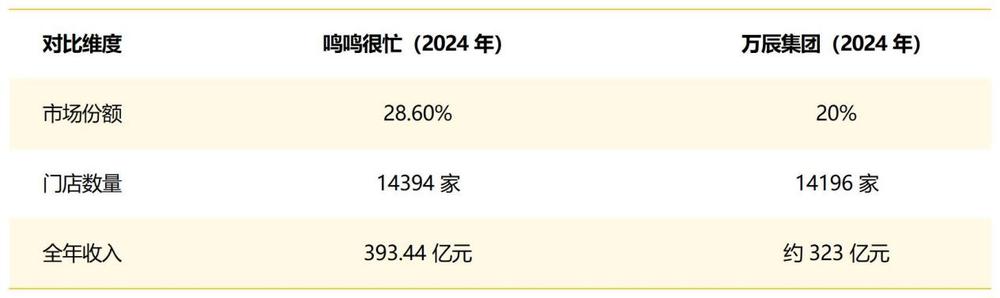 万辰集团与之差距并不悬殊,门店数量达 14196 家,2024 年收入逼近 323 亿元。