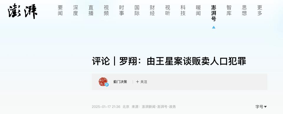 △今年 1 月份,罗翔教授发表《由王星案谈贩卖人口犯罪》评论。