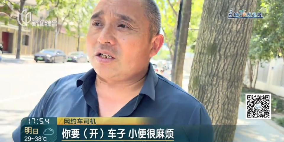 因为这个(如厕难)对跑网约车司机来讲,其实能给我们一点方便,我们特别感谢。你也知道我们跑这个车子很辛苦对吧,挺难的,你要(开)车子小个便很麻烦。