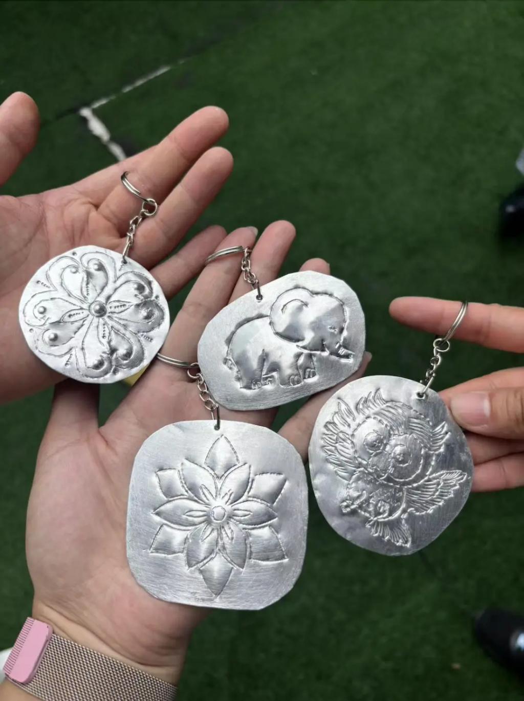 锡苏邦寺(银庙)旁的银饰课上,游客可以根据模板自己敲制可爱的大象挂链,也可以 DIY 戒指、项链;柴迪隆寺附近,参观完欧式和泰式结合的百年老宅,还可以动手制作捕梦网和兰纳纸灯笼。