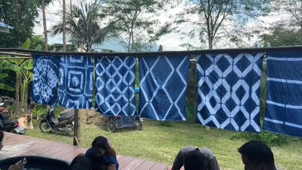 课堂上,大家晾晒做好的扎染布料。(图 / 受访者供图)