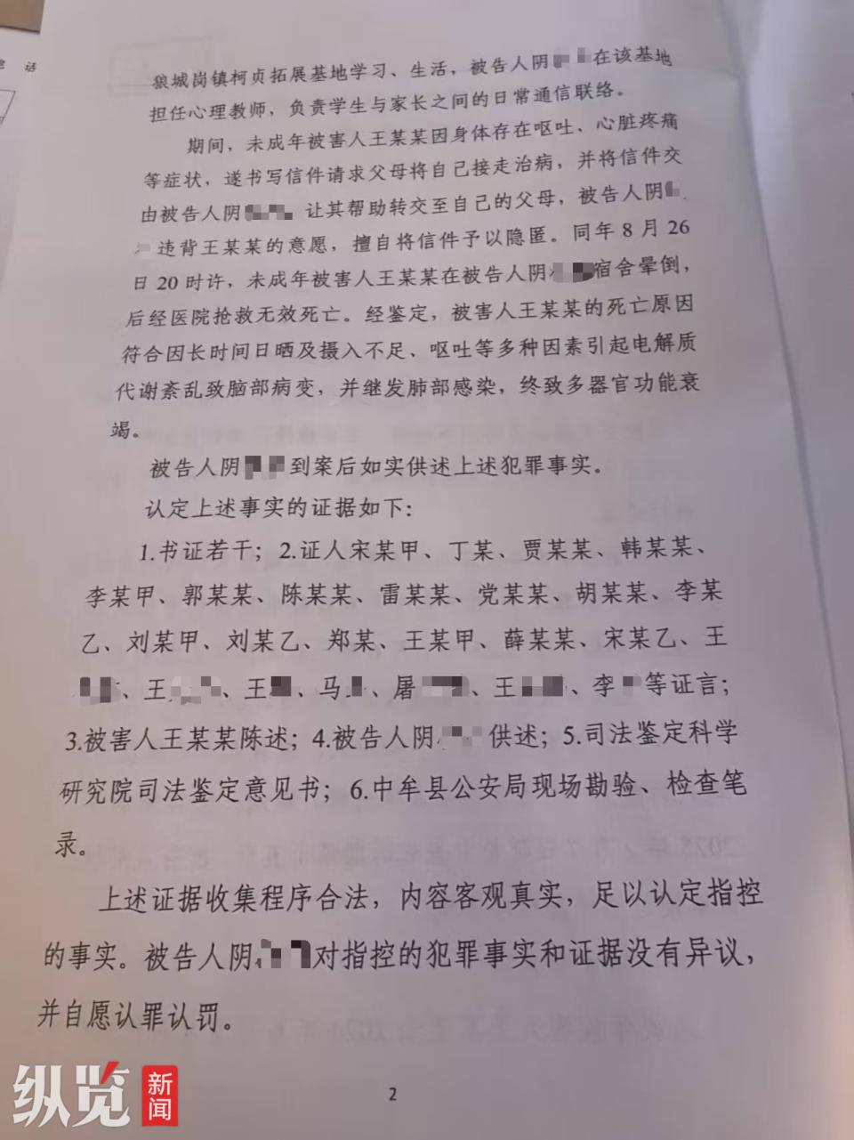王先生提供的起诉书也显示,被害人王某某在中牟县狼城岗镇柯贞拓展基地学习、生活期间,因身体存在呕吐、心脏疼痛等症状,写书信请求父母将自己接走治病,并将信件交给阴某某,让其帮助转交至自己父母,但阴某某违背王某某的意愿,擅自将信件予以隐匿。