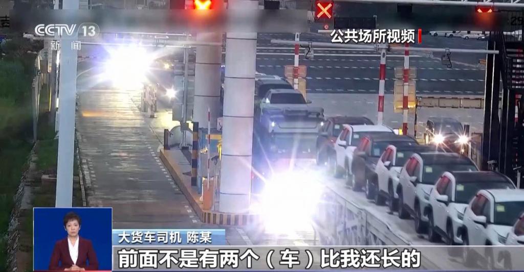 大货车司机 陈某:之前都是往高速服务区“倒板”。比如拉 7 台车上高速,不管车长 30 米还是 40 米,挂车都是不合规的,但是高速口都让上,只要拉 7 台就可以上,进到服务区里。然后用合规的车再拉 7 台,卸到服务区我再装上。之前服务区没人管控,现在服务区装不了了。