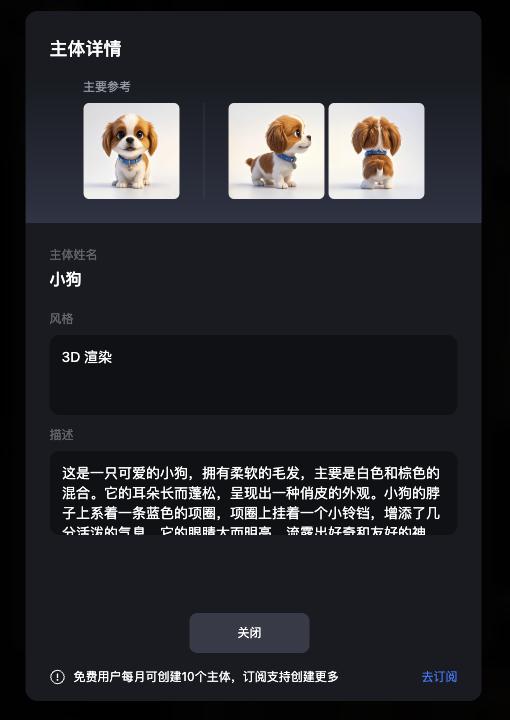 如果说「参考生图」是解决 " 单张图如何变得更合理 " 的问题,那么「主体」功能则把问题往前推了一步:如何在多张图、多场景中保持同一个角色的一致性。