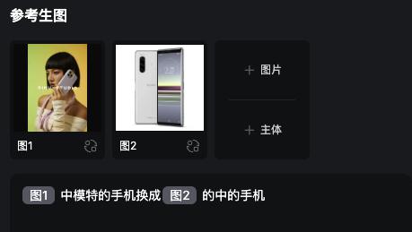 在 Vidu 中,我们尝试让模特保持动作,仅替换手中的手机。第一次测试结果不理想,模特姿势总有变化。但当输入更明确的参考图时,AI 可以基本维持动作,顺利替换产品。