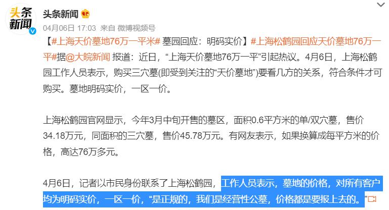 我查询了同期上海其它墓园的价格。