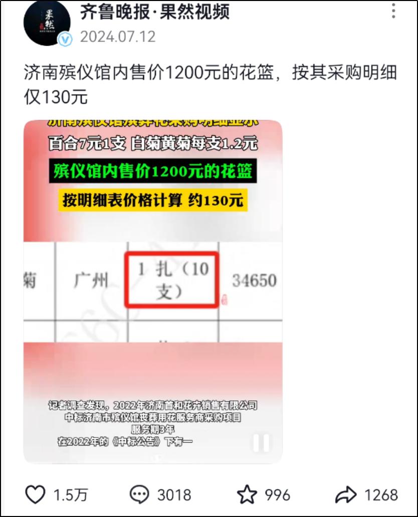 花圈贵了 9 倍地销。