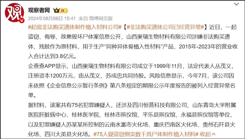 去年 8 月被爆出来多家医院和殡仪馆参与其中 " 倒卖遗体事件 ",相信会有令人满意的处理后续。