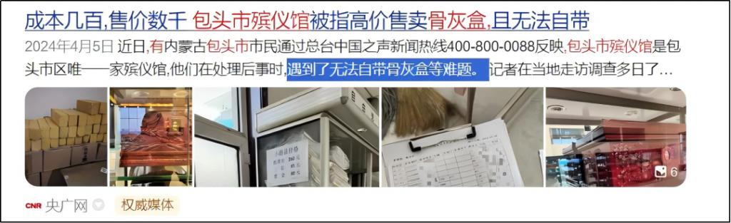 有的不让你自带骨灰盒,还卖给你比出厂价贵 10 倍的骨灰盒。