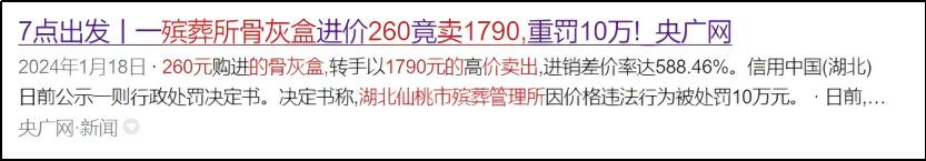 湖北仙桃市一个殡葬管理所把进货价 260 元的骨灰盒,卖到 1790 元,而且卖爆了,两年卖了 1500 多万元。