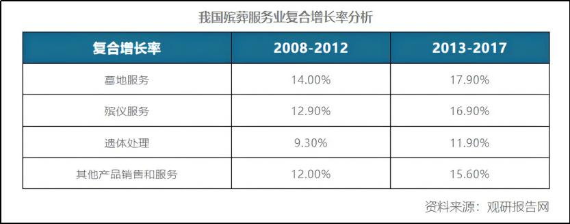 而墓地服务的增速更是一直遥遥领先。