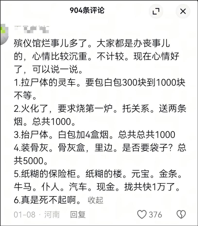 " 拉个尸体,要额外给白包,动不动得 1000。"