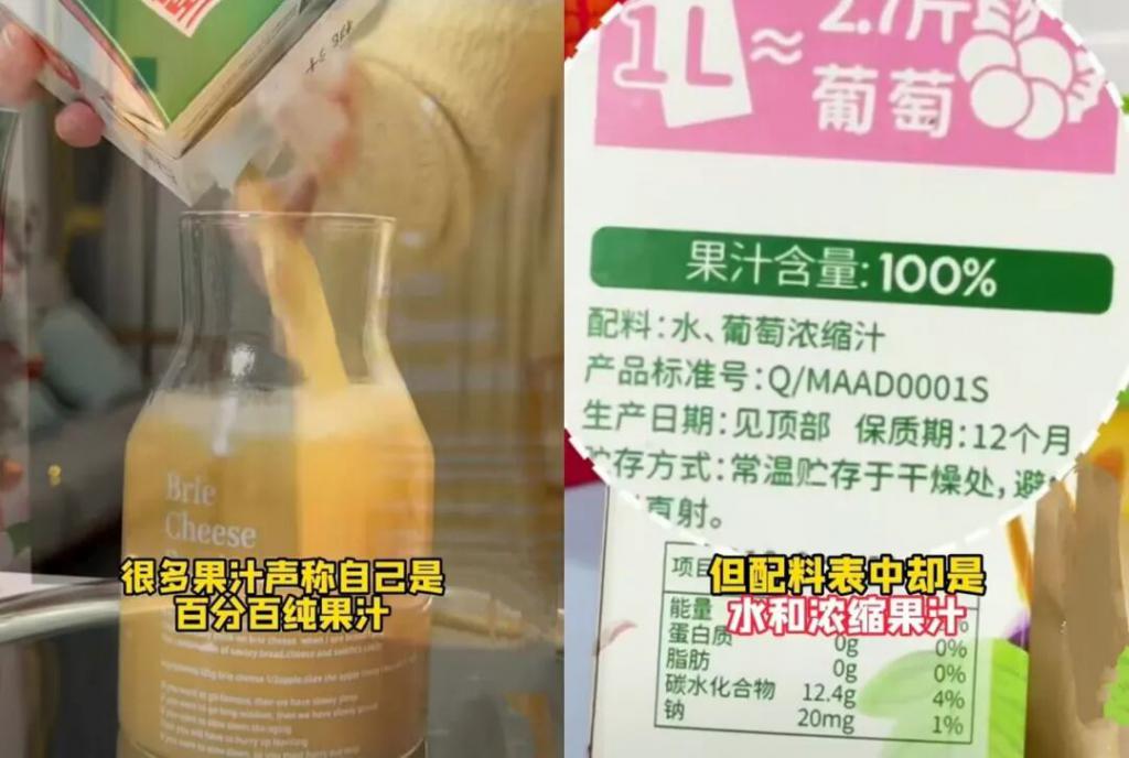 而所谓的 " 浓缩还原果汁 ",虽然听起来高大上,实质上是先将果汁高温浓缩成膏,再添加香精和水进行 " 还原 ",整个过程几乎抹去了天然水果的全部营养和纤维。