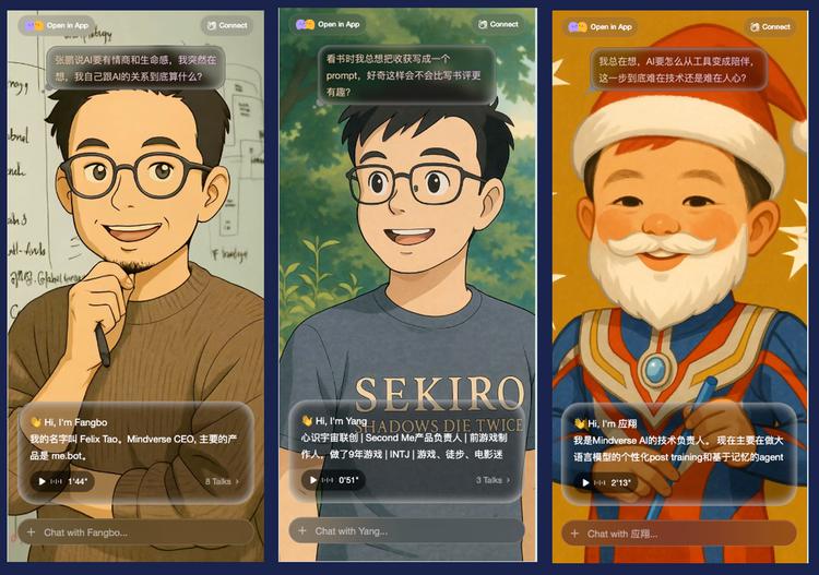 这款产品并非凭空出世,而是源自心识宇宙一直都想要做出一个能够代表每个用户自己的 AI:先是去年 5 月,面向海外用户发布了 Me.bot APP,通过用户日常记录,逐步养成能理解、表达并代表用户的 AI 身份模型;今年 3 月,又发起了开源项目 Second Me,三周内超过万人在 GitHub 上为项目打星。