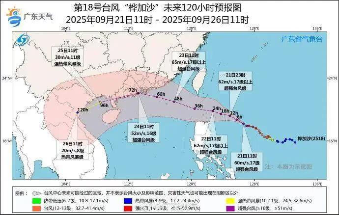 据羊城 · 晚报,根据中央气象台观测,截至 9 月 21 日 11 时,今年第 18 号台风 " 桦加沙 ",已经加强为中心附近最大风力 17 级的超强台风。广东省气象部门 9 月 21 日预计,受 " 桦加沙 " 影响,23 日至 25 日广东海面和陆地将有一次严重风雨影响,各地需提前做好巨灾防御准备。受今年第 17 号台风 " 米娜 " 残余环流影响,20 日至 21 日,广东多地出现强降水。