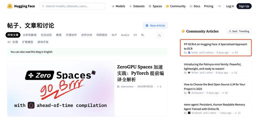 这个登顶不难理解。千分之一的参数量、足够 SOTA 的效果、轻量级部署……这几个反差足够吸引广大开发者成为源源不断的 " 自来水 "。 据了解,截至目前,这个由百度飞桨团队发布的技术 Blog 已经连续一周霸榜 Hugging Face 博客热度。
