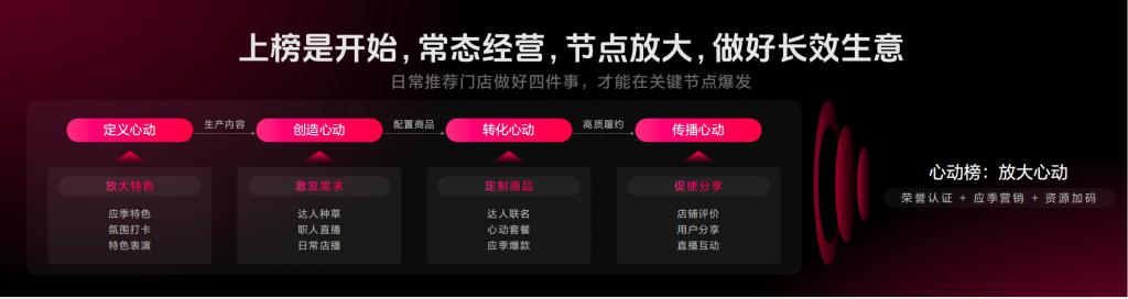 站在平台视角,这种 " 一直在场、常常洞察 " 的自觉引领动作,自然会让用户形成 " 找餐厅看心动榜 " 的习惯,让商家将上心动榜纳入年度经营规划,抖音本地生活的留存率也随之被带动。