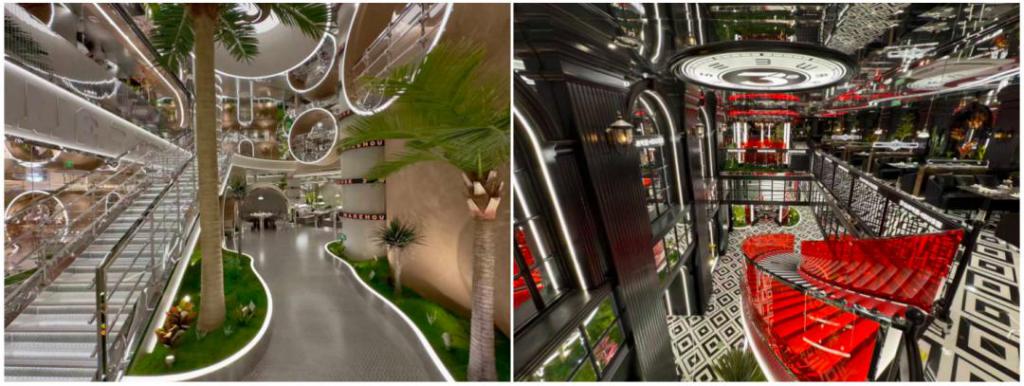 未来先锋:多走太空风或科技感路线,通过工业风改造(如老仓库)或科技装置(如反重力送餐系统)营造未来感用餐场景,同时借助赛博光影、金属机械等元素,为食客带来充满科技感的新奇就餐体验。就像在全国开出 20 多家店的 "3 号仓库 · 创意中国菜 ",上千平的面积、不留空白的体验空间感、兼融各种菜系的菜品,让它仿佛一个未来次元的 " 超级大卖场 ",其上海新世界店被网友称为 " 白色系水晶宫 "。