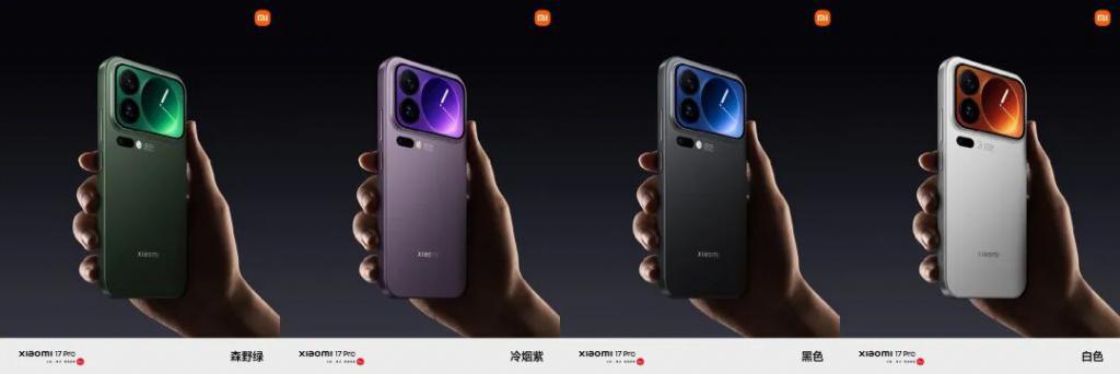 小米 17Pro 系列也有四款颜色,除黑白外,还有全新森野绿和冷烟紫。