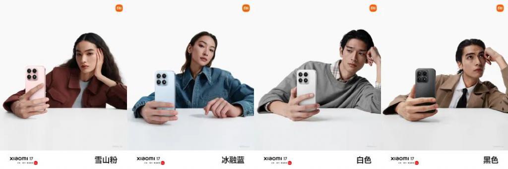据悉,小米 17 共有 4 款颜色:雪山粉、冰融蓝、还有经典黑白双色。