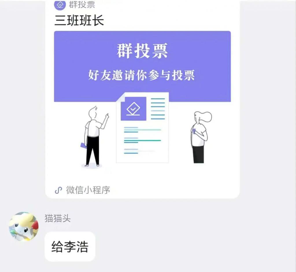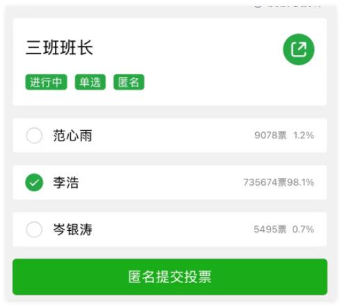 最近有人在群里发了个投票链接,估计是要给自己拉票当班长。