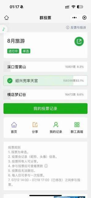 今年 7 月,一个公司要去团建,员工就把 44 人群里的旅游目的地和投票二维码放抖音上了。