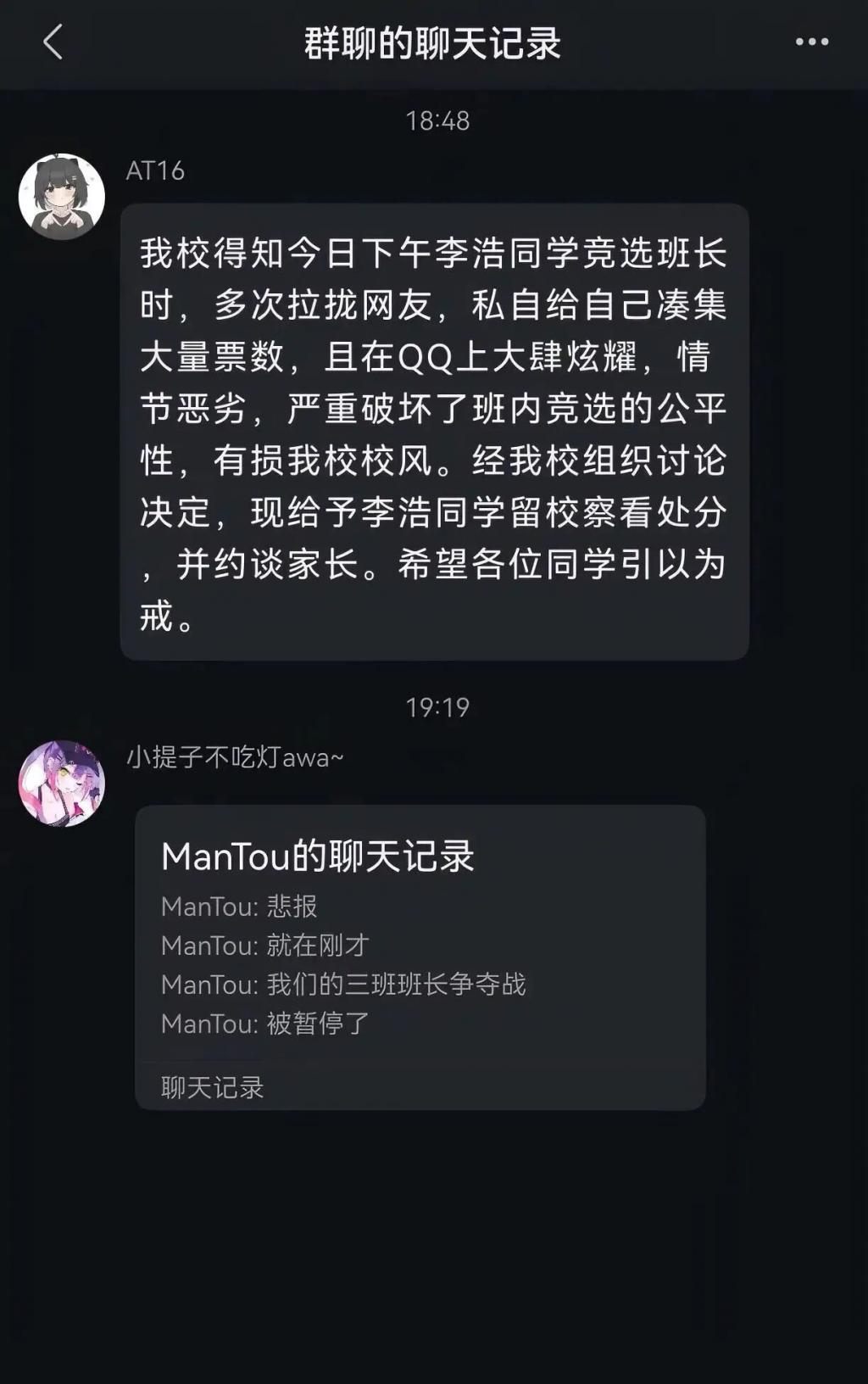 还有不知道哪里找来的群聊记录说,李浩因为私凑票数被处分了。